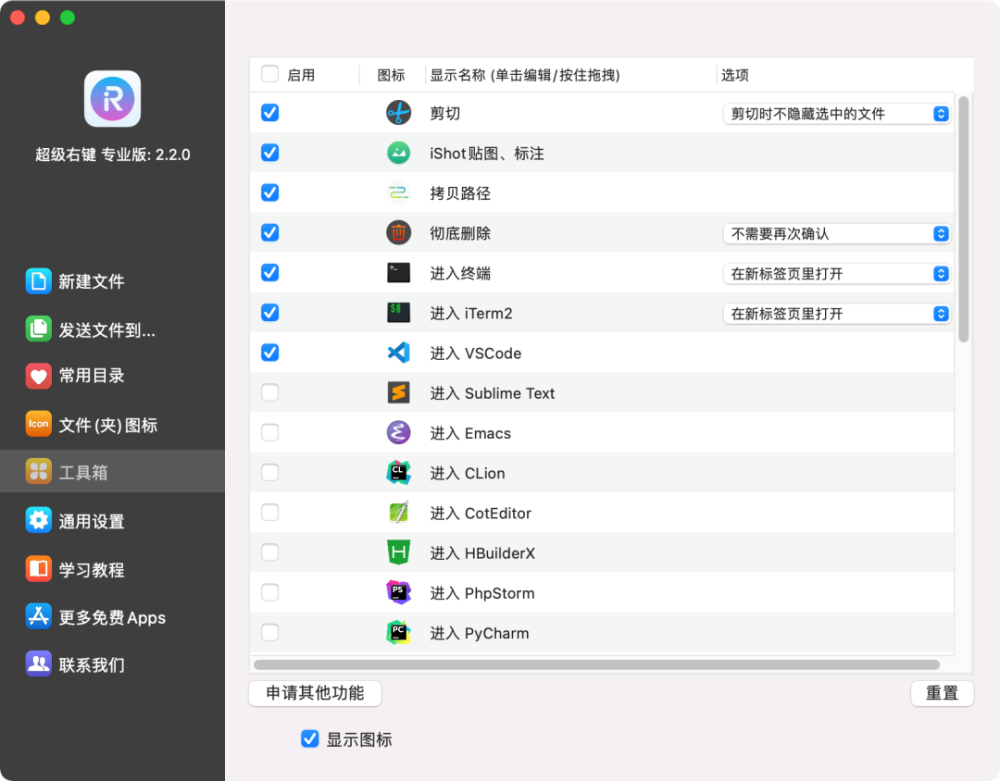 您也可以在正确的密钥上添加功能,例如彻底删除、复制路径、隐藏文件并利用软件打开文件。购买专业版本,方便进入Typora、终端、VScode、喷气脑系列和其他应用程序。进入项目文件夹太简单了程序员一定别错过!