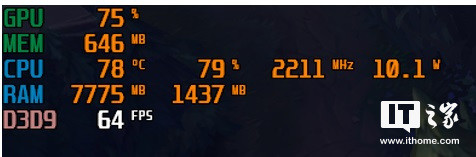 64个FPS框架速率为64个FPS框架速率,CPU温度78°C
