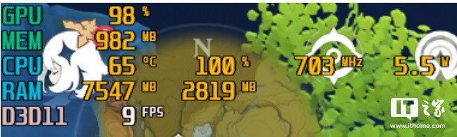默认(低)下,框架速率大概约为9-10个FPS,这有望激活温度控制,而CPU仅限于非常低的频率(只有703 Mhz)。