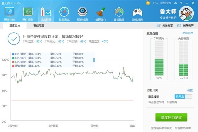 同时,我们注意到,这本笔记本在CPU的备用模式下可能达到60°C的温度,甚至可能在负重时接近100°C,表明它缺乏适当的热散散手段。