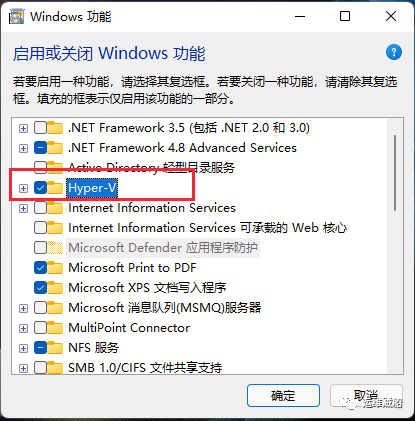 在 Windows 功能下定位超V, 检查它, 点击确定 并重新启动 PC 。