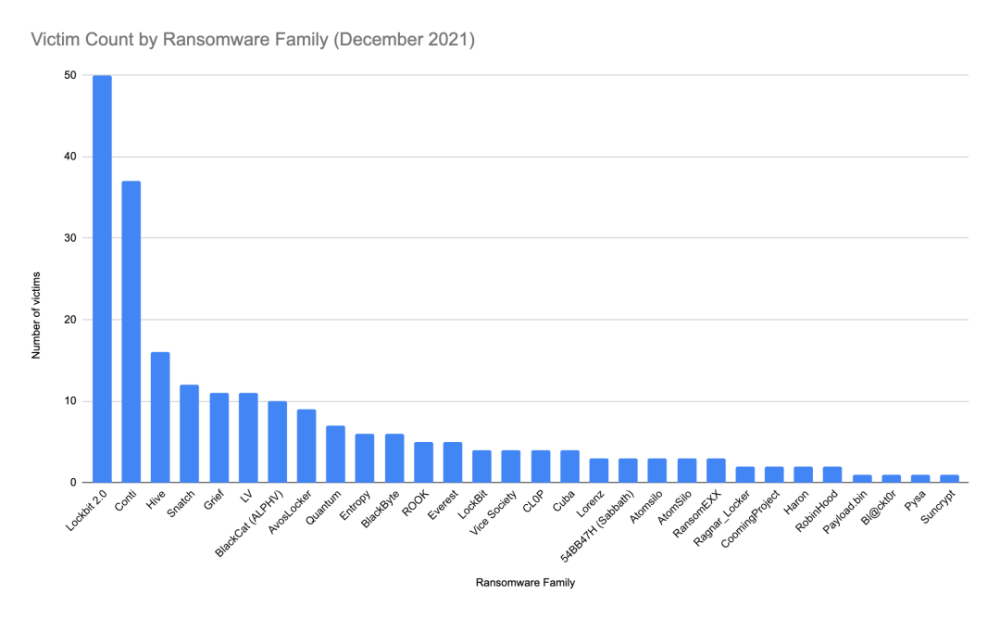 如下图所示,许多RaaS供应商采用双重勒索策略,其中许多人采用同样的技术。换句话说,这是加密前的数据盗窃。这使他们在索要赎金方面更有影响力。2021年12月42分队的勒索追踪计划BlackCat泄漏现场确认的受害者是第五多的受害者。鉴于该团体自2021年11月20日以来只为公众所知,因此,其令人难以置信的增长率是相当惊人的。尽管Conti(排在第二位)在过去两年中作了若干修改,但它无法产生显著的差别。暴力家庭的发展已经吞噬了它。LockBit 2. 至少比BlackCat早六个月然而,这揭示了一种趋势。新手或改革后的团体可能在短期内针对大量受害者。
