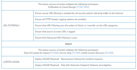 BlackCat勒索软件和操作员(TTP)使用的方法、技术和程序见本文件的说明。为了防止他们受到攻击,他们被直接描绘成帕洛阿尔托网络的产品和服务。它还就如何保证其设备安装正确向客户提供咨询。