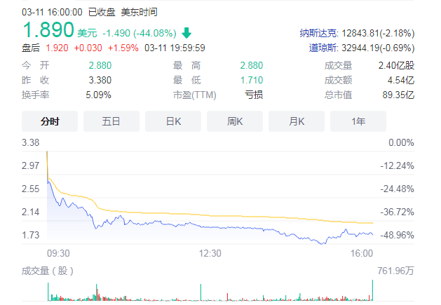 要知道,去年美国市场的分配价格是14美元。当市场处于高峰时,价值851亿美元。而如今,减少的费用仅为1.89美元。同样,市场估值也是89亿美元,令人同情。也就是说,我一年没去美国了市场价值缩减了762亿美元。大约四千八十亿元
