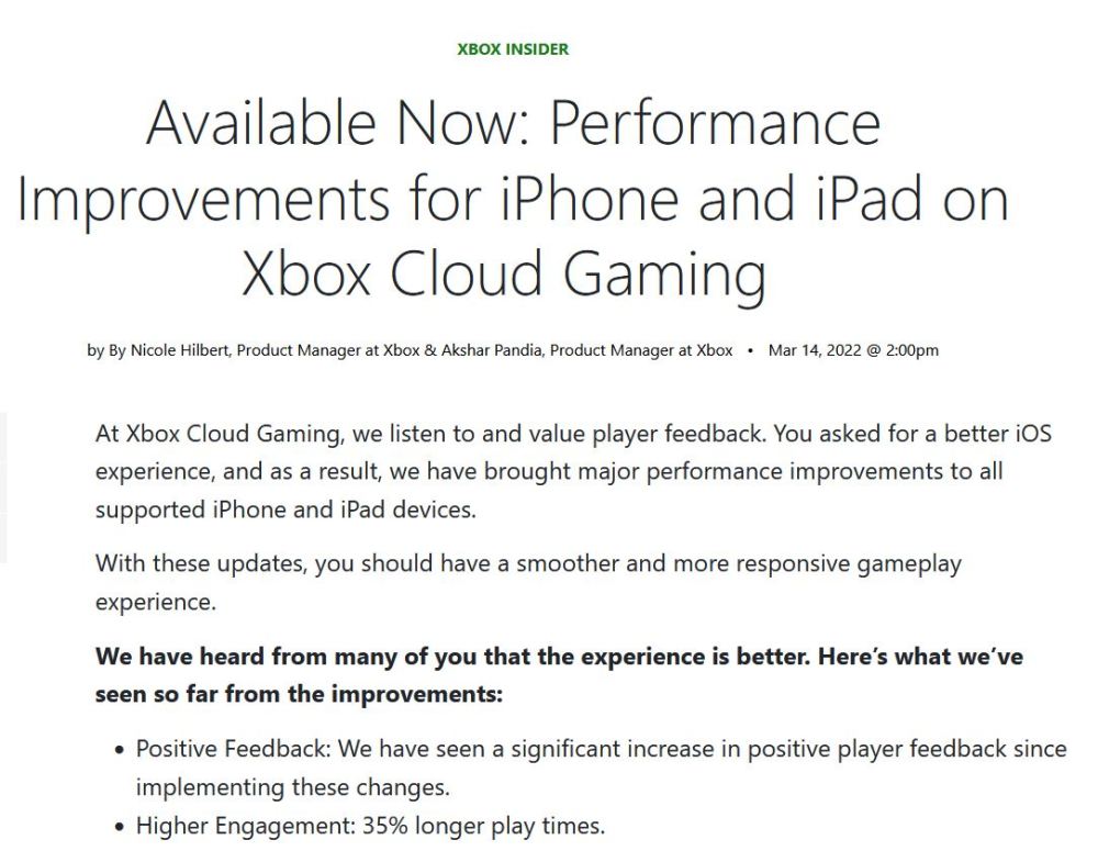 Microsoft声称,它大大改进了iOS智能手机Xbox云游戏的性能。