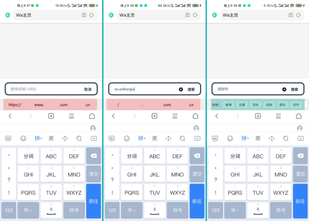 例如,搜索框,支持域名和关键词。如果是域名,无需搜索引擎即可直接访问该网站。