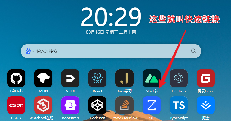 除了支持设置外,在主页搜索框下方支持添加/删除快速链接。 虽然我认为不需要在主页上永久显示一个通用的快速链接, 我让您选择 。