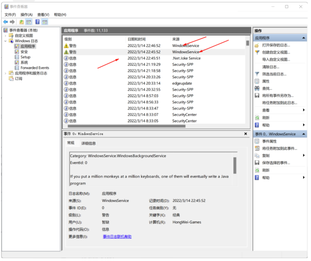 打开的事件查看器,
