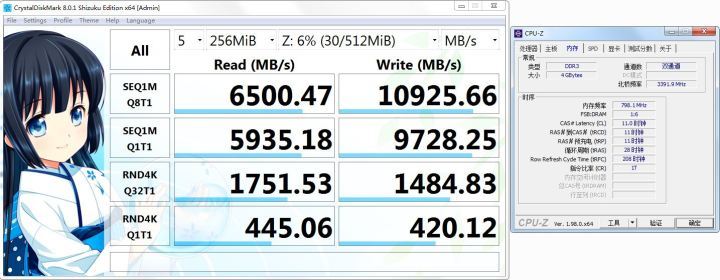 然后你运行了一点点,结果发现阅读和写作的速度在路上。在这里,我们使用由133年和1600年的16个银行的内存内存所建的8G内存,双向双道,理论上可以消除内存内存,应该更有助于增加内存磁盘的性能。