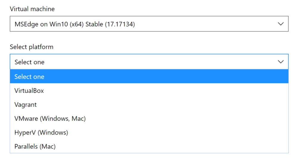 如果您不购买 Windows 的核定版本,微软提供免费 Windows 10 虚拟机器下载。将 https://devoper.org 的 https://devoper.org 输入 Microsoft 边缘, 下载虚拟机器页面。 对不起, 微软。 "MSEdge on Windows 10 (x64),"然后选择一个与您安装的虚拟平台相对应的平台。