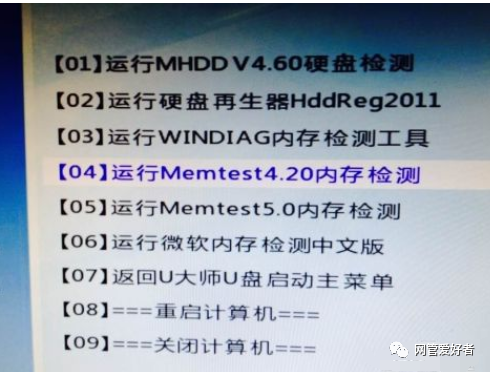 选择 [运行Memtest4] 。 == ==