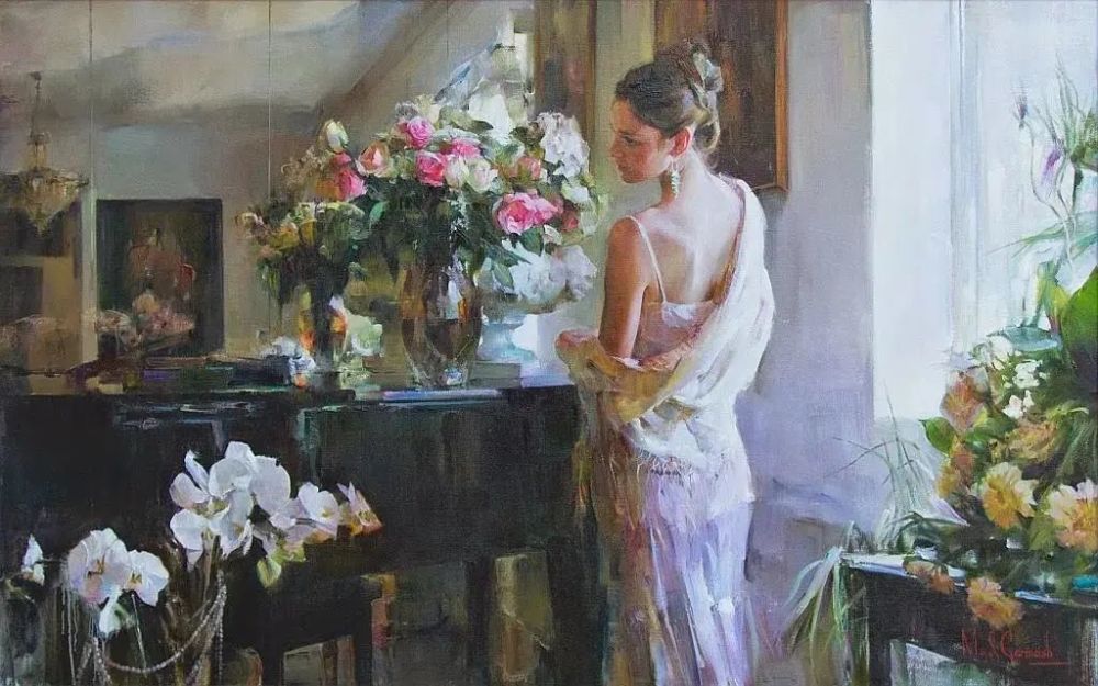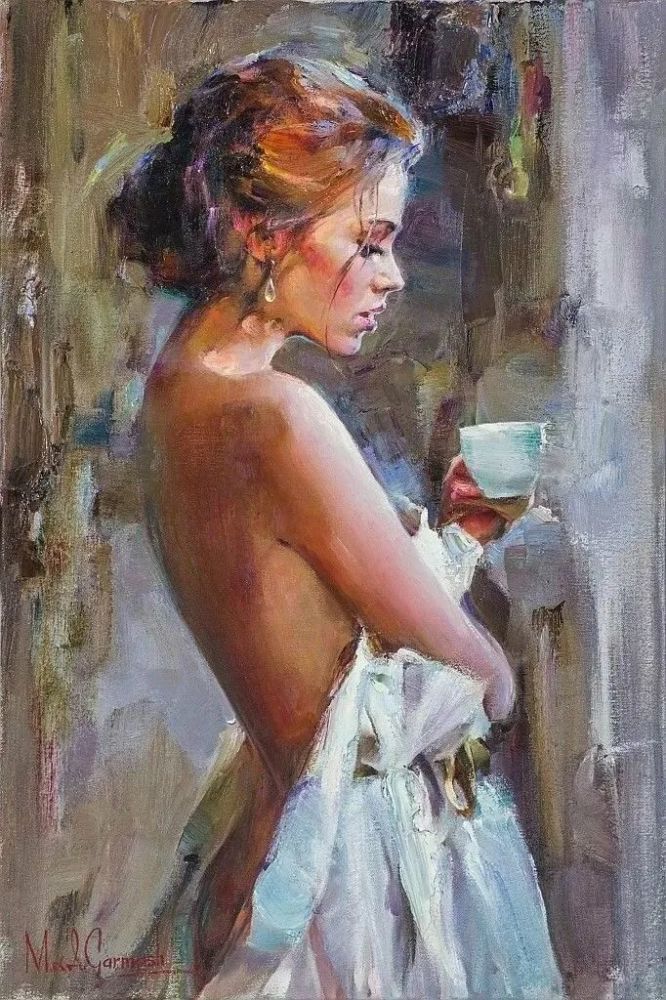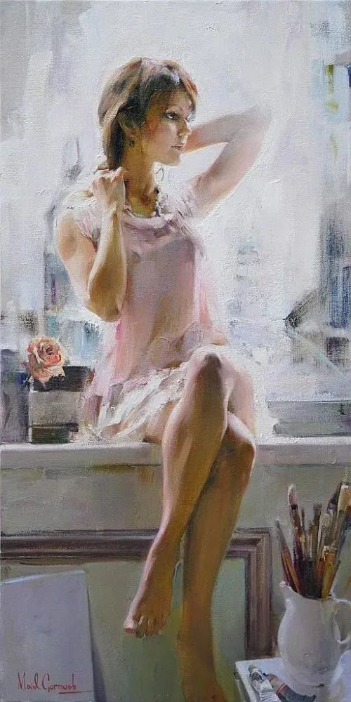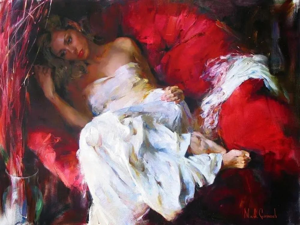 Since then, Michael and Inessa Garmash have worked together creating paintings, stained-glass windows, mosaics and drawings. They have exhibited in Sweden, France, Russia, Ukraine, Belgium and Finland. They continue working with their daughter Polina as a model and occasionally include themselves in their compositions.