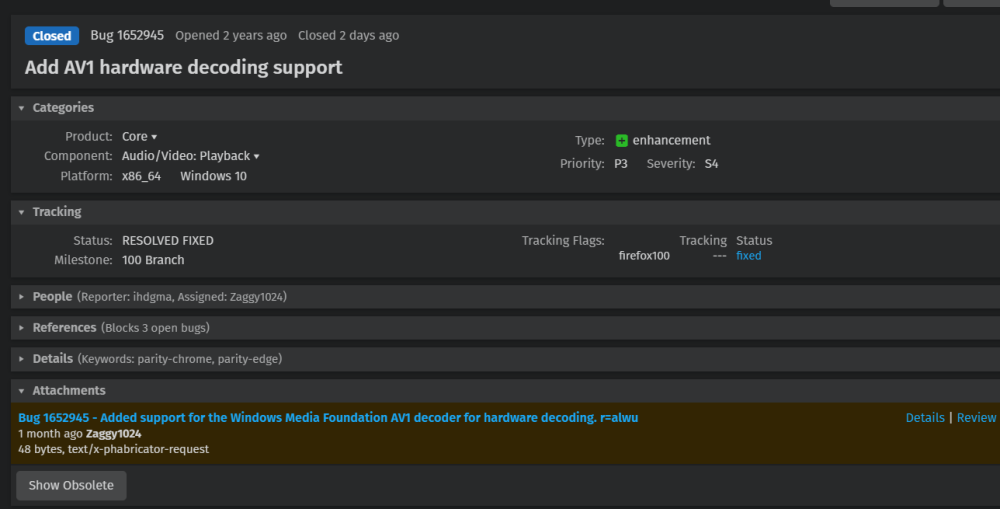 火狐浏览器 Firefox 100 将支持 AV1 视频硬件加速