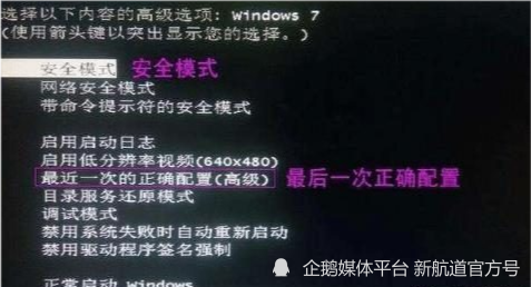 4. 重新启动计算机,然后按 F8 键访问 Windows 高级启动选项菜单,然后选择“ 最后右侧配置”,然后按 Enter 键进入系统。