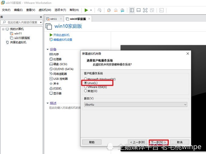 选择 [Linux],默认 [Ubuntu 版本],然后单击 [下一个]。
