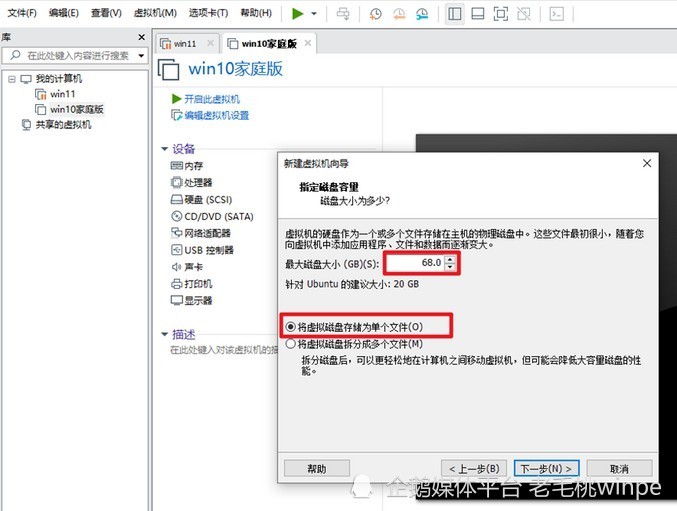 指定虚拟硬盘驱动器的大小,检查 [将虚拟硬盘保存到单个文件],然后单击 [完成 。