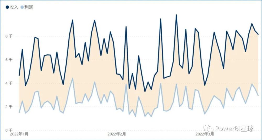 当利润被用作收入的底限并在黑暗地区得到体现时,就会在两条线之间造成阴影: