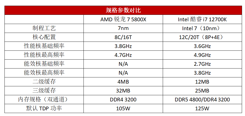 龙7,5800X 使用一种更先进的7nm技术。加速器可长时间运行,默认的TDP为105W。Intel 7 Koji 7 12,700K 过程其实就是10纳米的老科技。TPP默认设定为125W。如果PL2的能量完全释放,那将是190瓦。能源效率和急性75800X的能效差别很大。