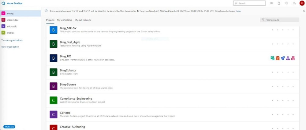 星期天,黑客聚集在电报频道。微软内部开发商账户的截图已经公布。表面上是Azure DevOps写的微软提供此项服务 。允许开发者共同开展项目工作。截图中描述的项目包括Bing的用户经验。科塔娜,微软的智慧助手这表明黑客组织可能可获得两种服务源代码。尽管屏幕截图后来被抹去,但仍无法提供。但是,黑客集团说,它稍后会重新印发。