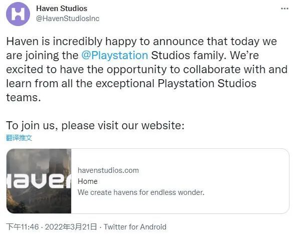 3月22日 清晨北京时间索尼集团发表声明,Sony互动娱乐公司将购买Jud Raymond Haven娱乐演播室(以下简称HES),这是一家由一名工业老兵管理的电子游戏开发公司。Sony没有在申报中披露交易的具体金额或细节。