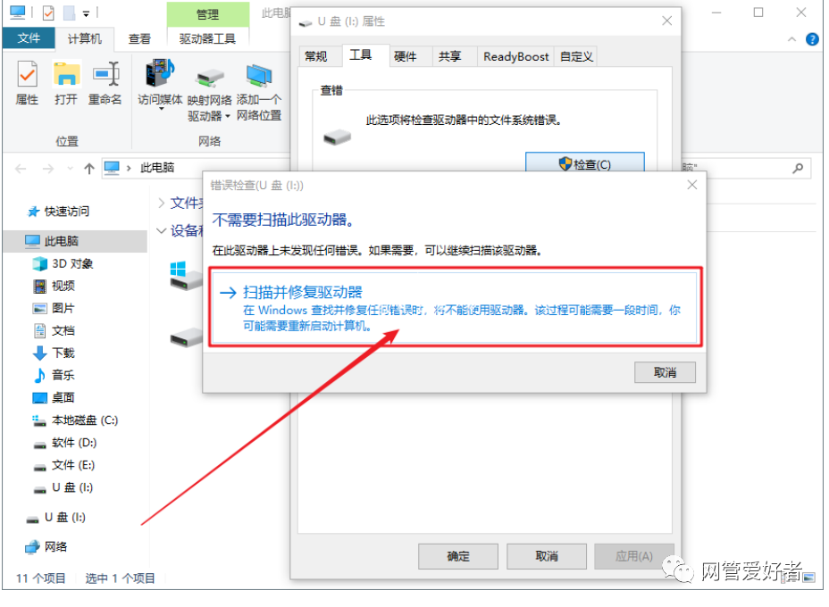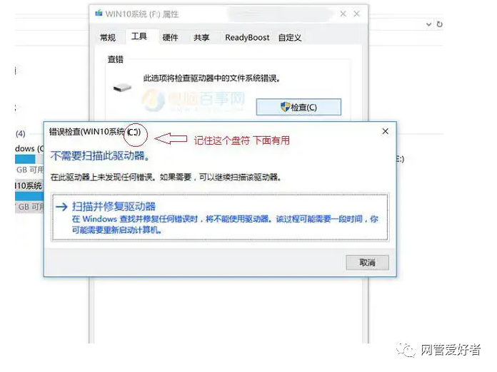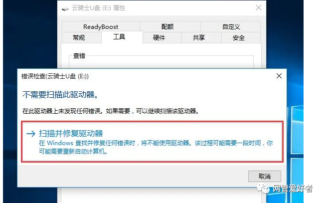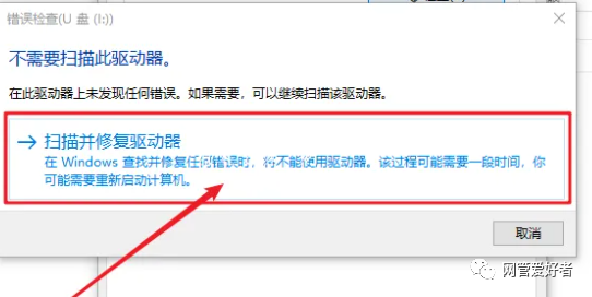 3. 错误复选框出现时,单击“扫描和修理驱动器”。