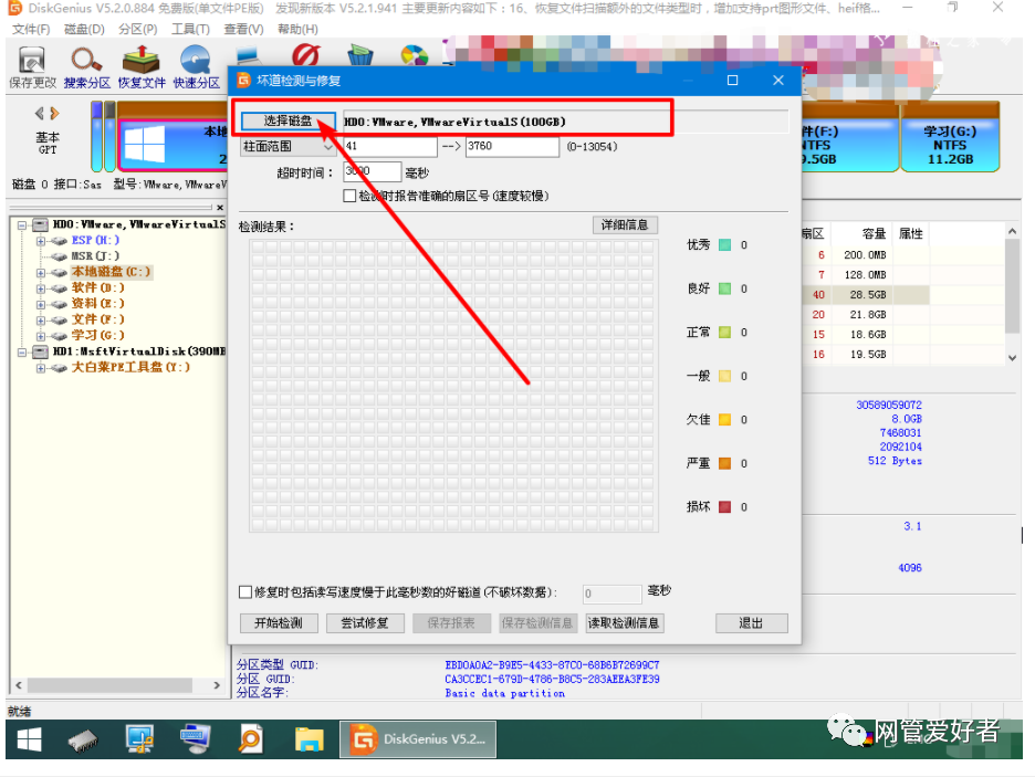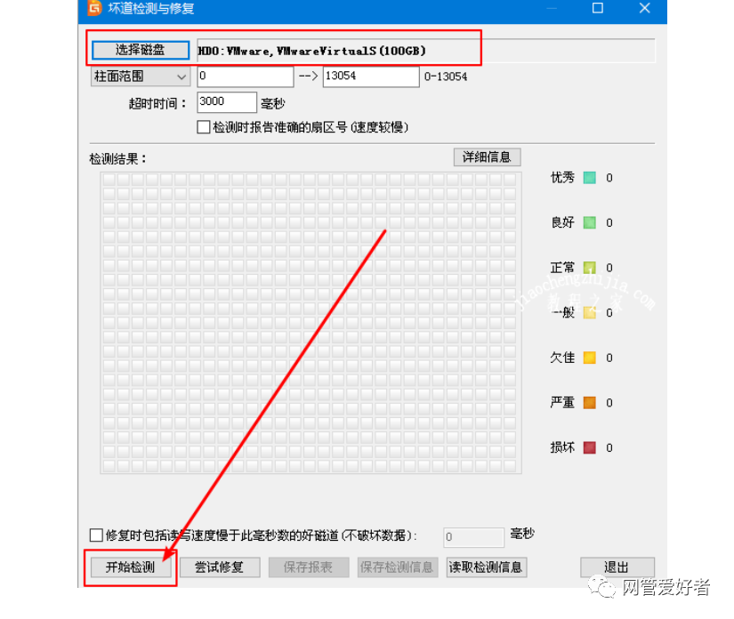 7. 回到探测窗口,在确定需要测试的磁盘后选择“启动测试”。