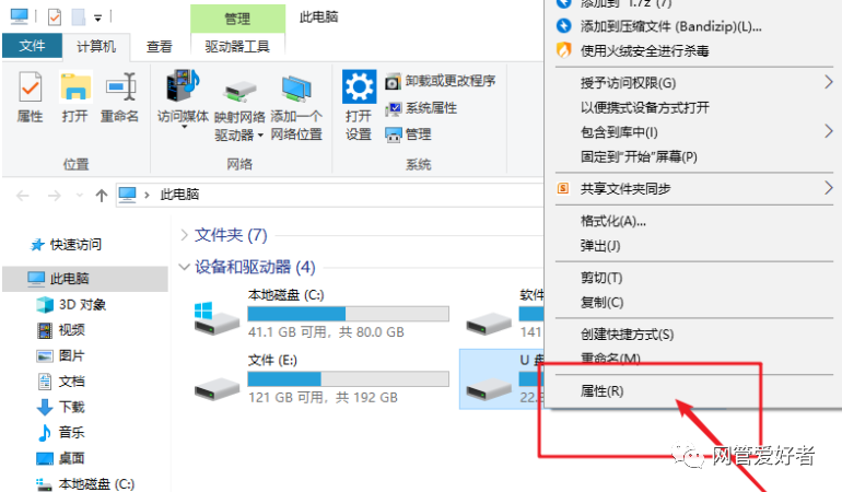 1. 打开此计算机,按下 C 键,然后单击“属性”。