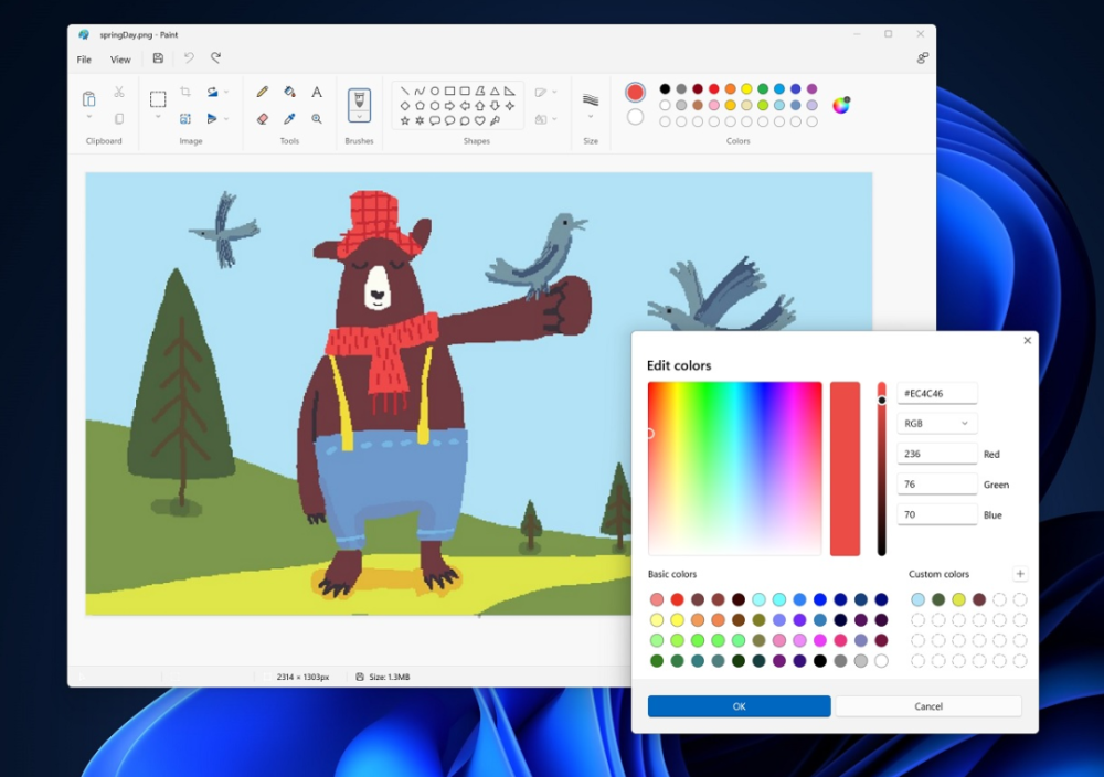 绘画现在根据Windows 11设计概念修改编辑颜色、大小和斜体以及其他对话框,如上面和下面的截图所示。
