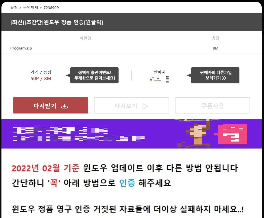 Webhard 上以下文章的标题含有恶意软件:[新 [快速安装] Windows 许可证[一个密钥]。