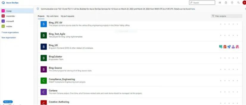 上周末,包括左上角的“Azure DevOps”、“Bing”和“Cortana”等。他们都没有成功入侵微软Azure DevOps服务器。Bing、Cortana和其他内部组成部分的源代码是公开的。
