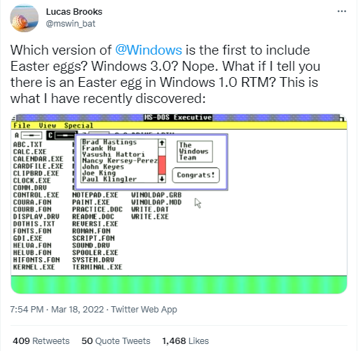 Lucas Brooks, Windows Aficionado, 最近在Twitter上声称他发现了最早的Windows蛋,