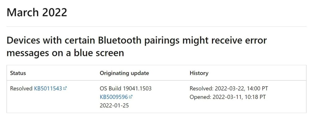 根据IT House,微软公司现已核实,先前公布的KB 5009596(2022年3月22日)累积更新了Windows 10中某些设备上出现的固定BSOD问题。