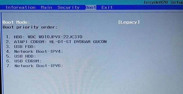 转到BOOT标签。我们发现了靴子模式。它被称为硬盘启动模式。此时此刻,我们发现 启动模式激活了UEFI模式但是,我正在研究MBR模式的硬盘分区。因此,MBR分割表必须符合遗留问题。如果硬盘上的分区表格式是 GPT( 制导),在此配置中使用 UEFI 模式 。