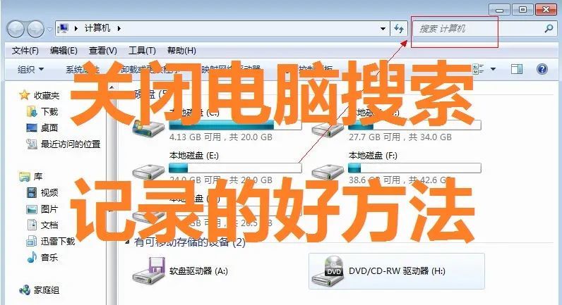方法2. 直接从 Win7 资源管理中禁用搜索记录。