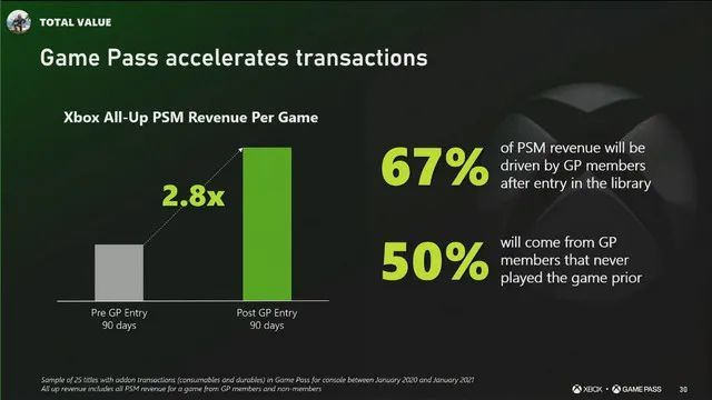 这是一个明确的指标,显示XGP上的新玩家掌握了发现游戏、玩游戏和支付游戏内容的全部过程。