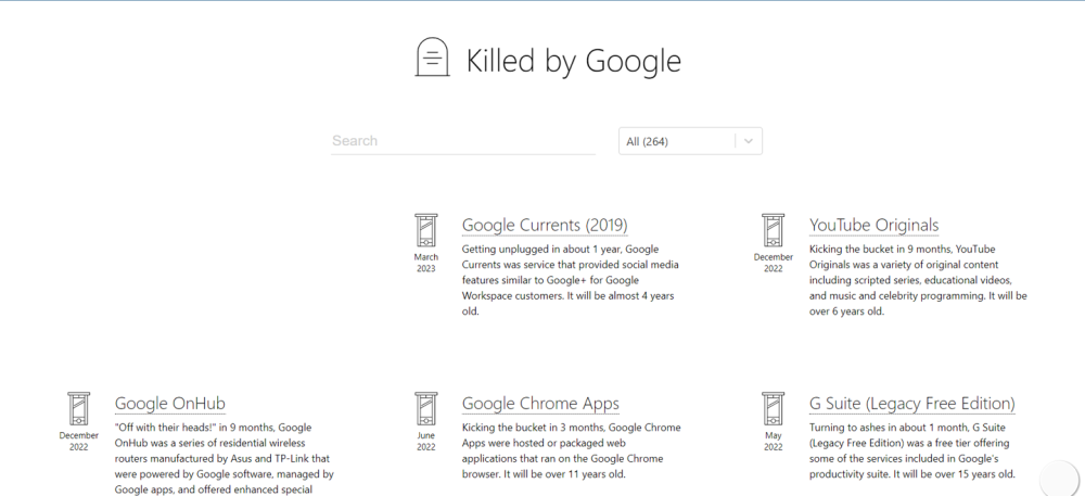 那么,微软在最初几年放弃了多少倡议?答案来自一个神秘的网站“微软杀死了”。