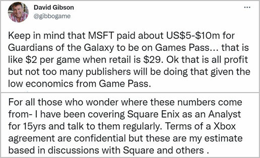 去年10月26日, 推出并公布「Square Enix Guard」。3月10日, Xbox Game Pass订阅服务开始使用。他们只有大约四个月的间隔。最近几天公布了赌博行业分析员的估计数字。为了让XGP在XGP中竞争,微软公司投资500万至1 00万美元。