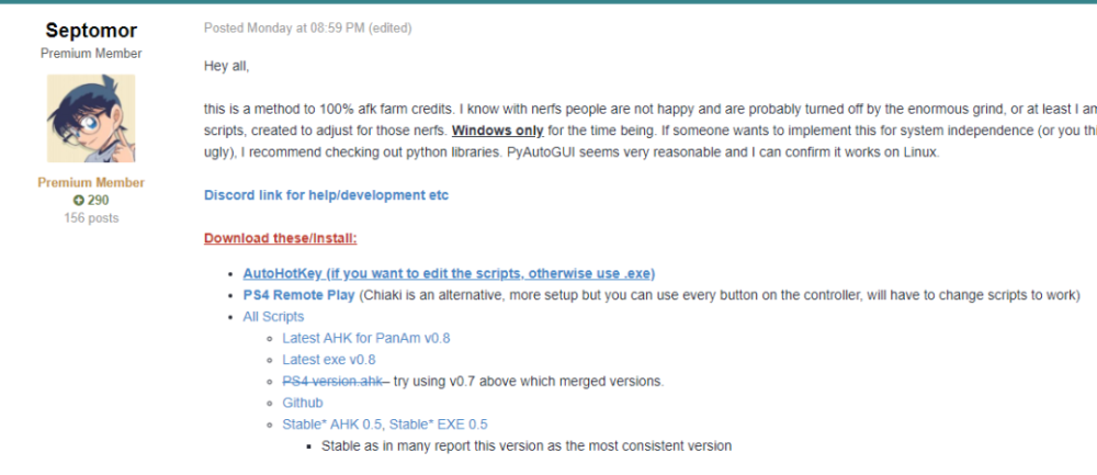 一位先前在评论部分使用剧本的玩家说,