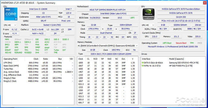 看一下HWINFO64软件一旦启动后所识别的特性就可以看出,主面板上安装的主要硬件可以适当识别。