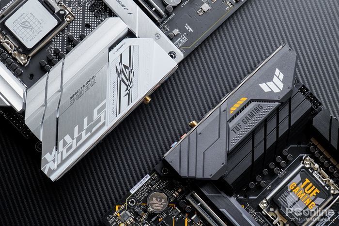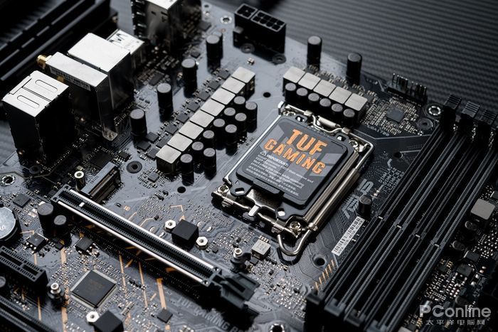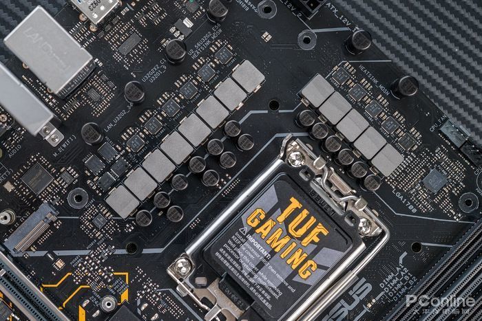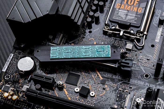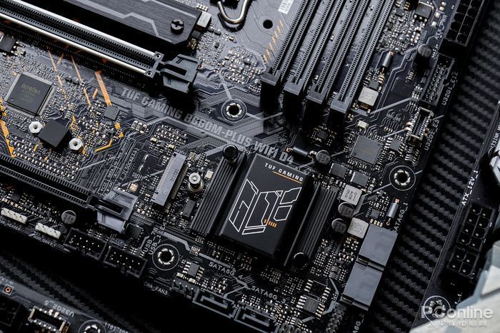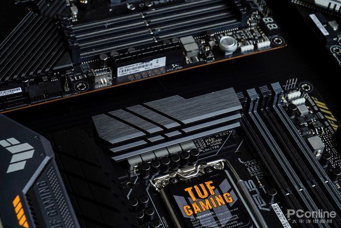 保护B660芯片组的防弹背心上布满了TUF GAMING的技术外观。