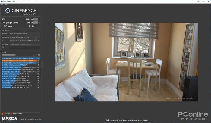 Cinebench R20试验结果:单核酸718cb、聚核酸6554cb。