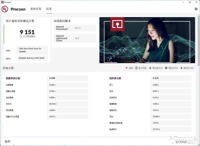 在媒体表现方面,UL Procyon方案用于评估媒体的创造性以及平台操作摄影、视频编辑、PS、LR和PR媒体表现应用软件的能力,UL Procyon方案用于评估媒体的创造性以及平台操作摄影、视频编辑、PS、LR和PR软件的能力。