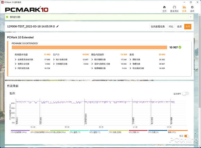5Ghz以上的高频(高频)最终总得分为10907,其中往往使用基本功能11402、生产率10590、数码内容生产13369和博彩2369。