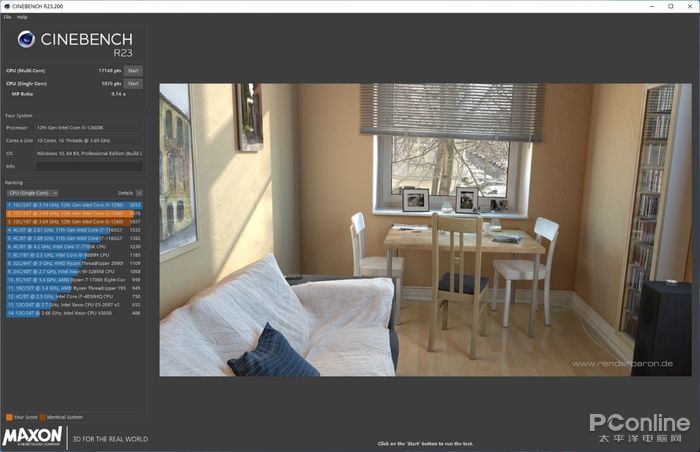 Cinebench R23 测试结果:单内核1876点,多内核17148点。