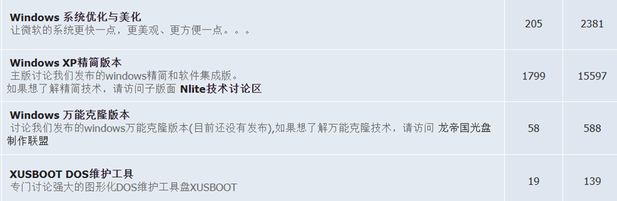 现阶段论坛的深度对于爱好者来说是相当方便的。在论坛最初的系统(Deepin XP Plus、Deepin XPLite、简化的Deepin XPLite、Deepin XP Clone等)下设立了子集。一些对系统美学感兴趣的个人解剖了主题、皮肤、图标、光标、背景、屏幕等等。可谓琳琅满目。