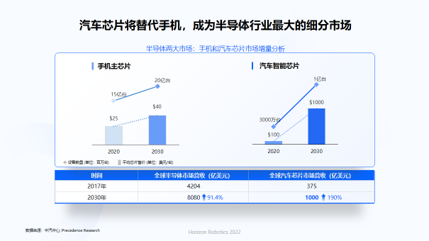 "到2030年,预计,智能汽车是半导体的首个纵向使用。在这种产业变革下,新的技术参与者将出现,新的技术参与者也将出现。智能车辆代表着一个一生中一次的机会,让地平线创造人工智能芯片和操作系统。中国消费者对智能车辆技术的接受程度令人瞩目。地平线也许更适合这种用途 我不知道该怎么办余凯强调,实际具有市场竞争力的技术,它不只是在实验室里工作。在用户经验和反馈方面也应加以改进。