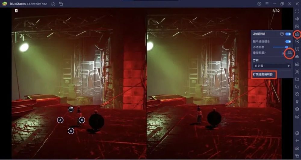 Xbox 360 的 Contractorler 不支持 。但是蓝堆提供了一个重要的特征: 控制绘图。跟随模拟器中的 Xbox 应用程序,在右边,单击键盘图标。点击控件后处理图标,点击控制专家,然后,根据接口,您可以将不同的模块拖到虚拟按钮上(相反,有一个 XBox 360 控点)。