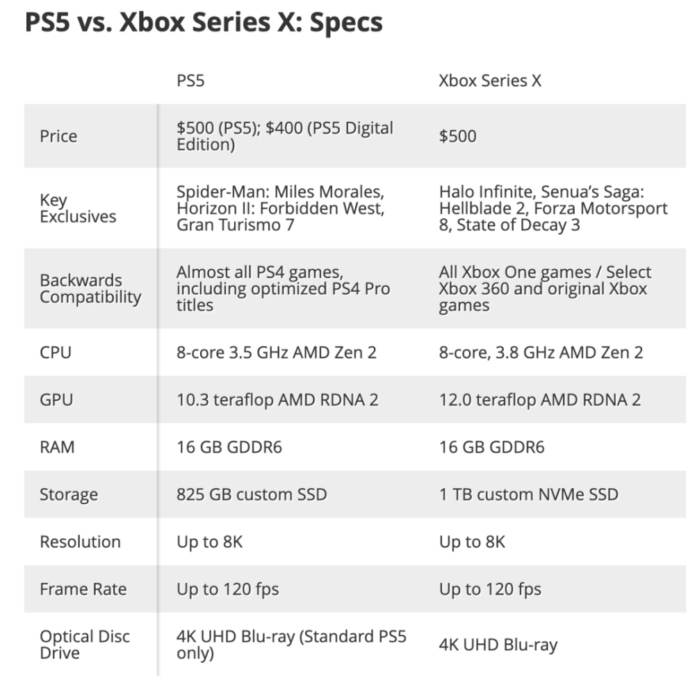 在发动特定战略攻击之前我们也必须承认,微软最新的Xbox在硬件方面也比索尼的最新PlayStature表现得更好。如下图所示,两场最新比赛的价钱都是五百元另一方面,微软Xbox X系列中的CPU、图形卡和硬盘“三个部分”远远大于索尼PS5系列中的CPU、图形卡和硬盘“三个部分”。