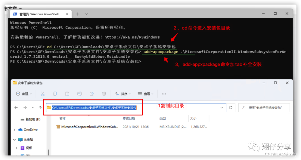 命令添加- appxpackage 空格加塔布自动完成安装 。